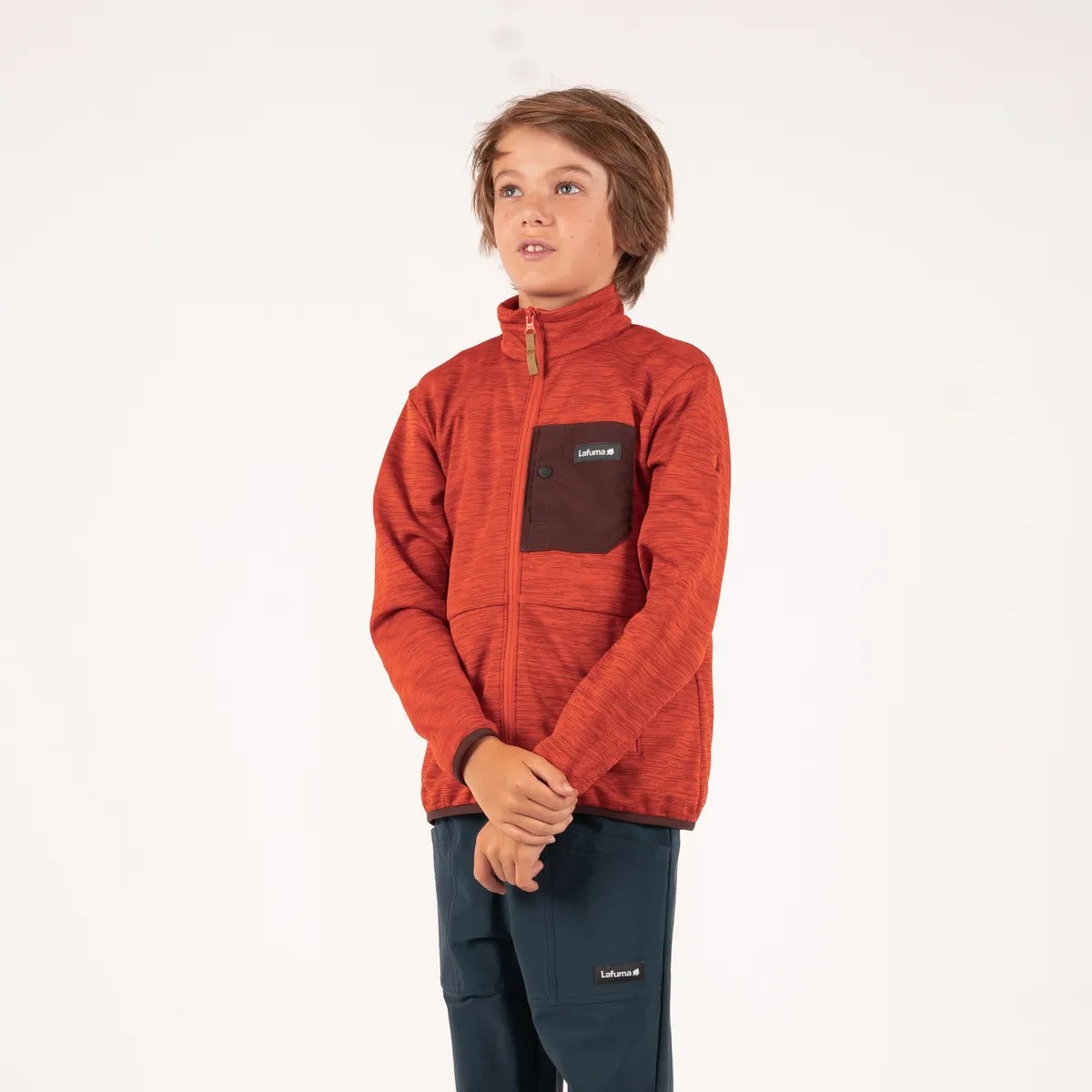 Αυτό το παιδικό fleece περιορισμένης παραγωγής, είναι κατασκευασμένο από ανακυκλωμένα υλικά για την ελαχιστοποίηση των περιβαλλοντικών επιπτώσεων. Ζεστό, διαπνέον και ελαστικό, παρέχει θερμική άνεση στην πεζοπορία και στα ταξίδια. Ο ψηλός γιακάς, η ελαστική μέση και οι μανσέτες, βελτιστοποιούν τη διατήρηση της θερμότητας. Τρεις τσέπες με φερμουάρ, συμπεριλαμβανομένης και μιας στο στήθος με έντονο χρώμα, κρατούν τα παιδιά σας ασφαλή και τα χέρια τους ζεστά. Τέλος, αυτό το σπορ - παιδικό fleece της LAFUMA, χάρης στο φερμουάρ σε όλο το μήκος του είναι εύκολο να φορεθεί καθώς και να προσαρμοστεί ο εξαερισμός στα μέτρα του παιδιού.