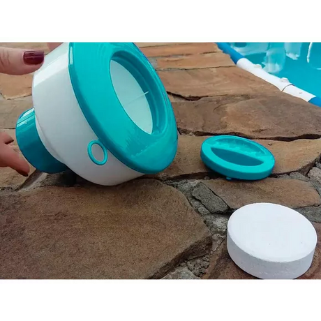 Χρησιμοποιήστε το πλωτό δοχείο για να χλωριώσετε την πισίνα σας. Χωράει μια ταμπλέτα 7,6εκ (3") χλωρίου ή βρωμίου. Κατασκευασμένο από υψηλής αντοχής αδιάβρωτο πολυπροπυλένιο. Ρυθμίστε την ποσότητα του χλωρίου από το ειδικό δαχτυλίδι. Το καπάκι του είναι διπλού κλεισίματος για μεγαλύτερη ασφάλεια, ενώ είναι κατάλληλο για όλες τις πισίνες.