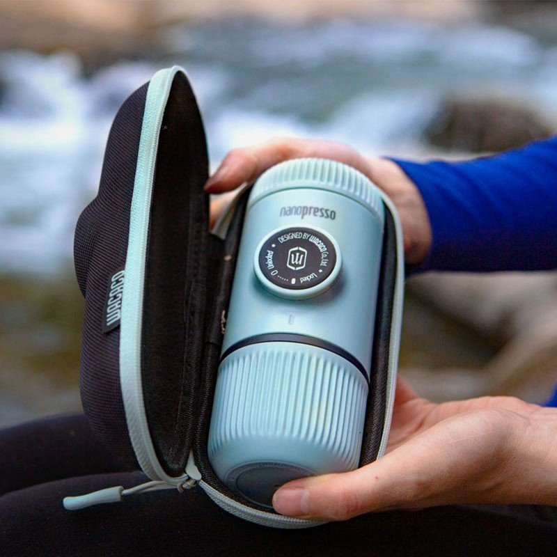 Η Wacaco Nanopresso είναι μια από τις καλύτερες και πιο ευέλικτες μηχανές εσπρέσο στην αγορά. Μια μοναδική προσθήκη στην εργαλειοθήκη εκείνων που επιθυμούν να παρασκευάζουν οι ίδιοι τον καφέ τους! Έχει κατοχυρωμένη πατέντα για το σύστημα πίεσης, η Nanopresso μπορεί να φτάσει με τη βοήθεια των χεριών σας μέγιστη πίεση 18 bar (261 PSI) για απαράμιλλη ποιότητα στην εκχύλιση του καφέ. Η χρήση της είναι απολαυστική και απλή. Η Nanopresso απαιτεί να ασκήσετε 15% λιγότερη δύναμη στο σύστημα πίεσης σε σύγκριση με τα προηγούμενα μοντέλα (1ης γενιάς Minipresso). Με την Nanopresso, η δύναμη βρίσκεται στο μηχάνημα, όχι στα χέρια σας. Η Nanopresso έχει καλύτερο αποτέλεσμα με λεπτό-αλεσμένο καφέ που τον πιέζεται δυνατά με το tamper. Μετά από κάθε παρασκευή εσπρέσο, ο καθαρισμός της συσκευής διαρκεί μόνο λίγα δευτερόλεπτα καθώς όλα τα εξαρτήματα του portafilter διαχωρίζονται εύκολα για βαθύ καθαρισμό. Η θήκη Nanopresso είναι κατασκευασμένη από ανθεκτικό υλικό EVA και εσωτερική επένδυση από μαλακό ύφασμα. Είναι ειδικά σχεδιασμένη για να συγκρατή σταθερά την συσκευή και να προστατεύει από τυχόν χτυπήματα, γρατσουνιές και σκόνη. Έτσι, η συσκευή θα είναι έτοιμη για να σας συνοδεύσει στην επόμενη μεγάλη σας περιπέτεια στην πεζοπορία και να απολαύσετε ένα γευστικό εσπρέσο στο βουνό.