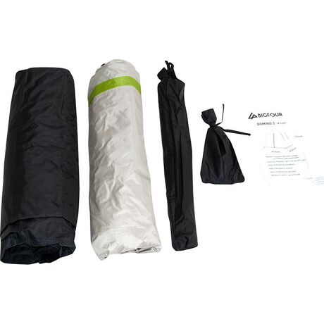 Σκηνή 3 ατόμων Domino από την εταιρεία BigFour με αντιηλιακή προστασία UV+30, ιδανική για το κάμπινγκ και τις υπαίθριες εξορμήσεις. Με διαστάσεις 210 x 210 x 170 εκ. είναι αρκετά βολική και ευρύχωρη για να φιλοξενήσει εσάς και τα αγαπημένα σας πρόσωπα. Εξωτερικά είναι κατασκευασμένη από 190T πολυεστέρα με επίστρωση PU και εσωτερικά από 190T πολυεστέρα διαπνέον, διαθέτοντας και κουνουπιέρα. Το μαύρο εσωτερικό ύφασμα, αλλά και η εξωτερική επίστρωση αφήνουν λιγότερο φως να περάσει στο εσωτερικό της σκηνής, εξασφαλίζοντας έτσι περισσότερη ώρα ύπνου το πρωί. Η Domino 3 είναι εξοπλισμένη με 2 πόρτες και 2 παράθυρα τα οποία φέρουν κουνουπιέρες, ενώ εσωτερικά διαθέτει και πρακτικές τσέπες για να αποθηκεύετε τα προσωπικά σας αντικείμενα. Ο σκελετός της σκηνής είναι κατασκευασμένος από fiberglass 2 x 8.5 χιλ. με γωνίες, αρκετά ανθεκτικός και στιβαρός. Απολαύστε ξέγνοιαστες στιγμές στο κάμπινγκ, την εξοχή ή το βουνό με την σκηνή Domino 3 από την BigFour.