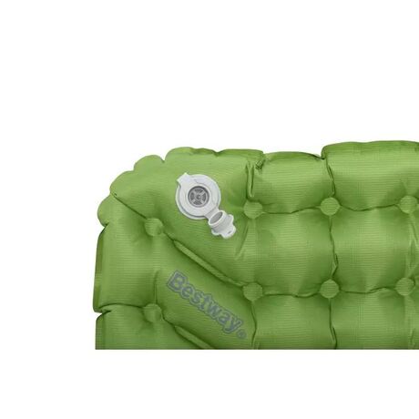 Κοιμηθείτε άνετα στο τέλος της ημέρας και χωρίς να κουβαλάτε βάρος, με το στρώμα ύπνου WanderLite της Bestway. Αυτό το πρωτοποριακό φουσκωτό στρώμα είναι συμπαγές και τυλίγεται σε μέγεθος συσκευασίας μικρότερο από ένα μπουκάλι 1,5λτ. Προσθέστε το στον εξοπλισμό του σακιδίου σας και διατηρήστε τον όσο πιο ελαφρύ γίνεται όταν εξερευνάτε την υπέροχη ύπαιθρο για μερικές ημέρες. Διαθέτει πατενταρισμένο σχέδιο CrossWing™ με γωνιακές υποδοχές αέρα ώστε να σας κρατά στο κέντρο και να μην κυλάτε ενώ κοιμάστε. Επίσης το υλικό ToughLite είναι ανθεκτικό στα τρυπήματα ώστε να μπορείτε να κοιμάστε άφοβα στο χώμα, ενώ η μόνωση ThermaZone™ παρέχει προστασία από το κρύο έδαφος.